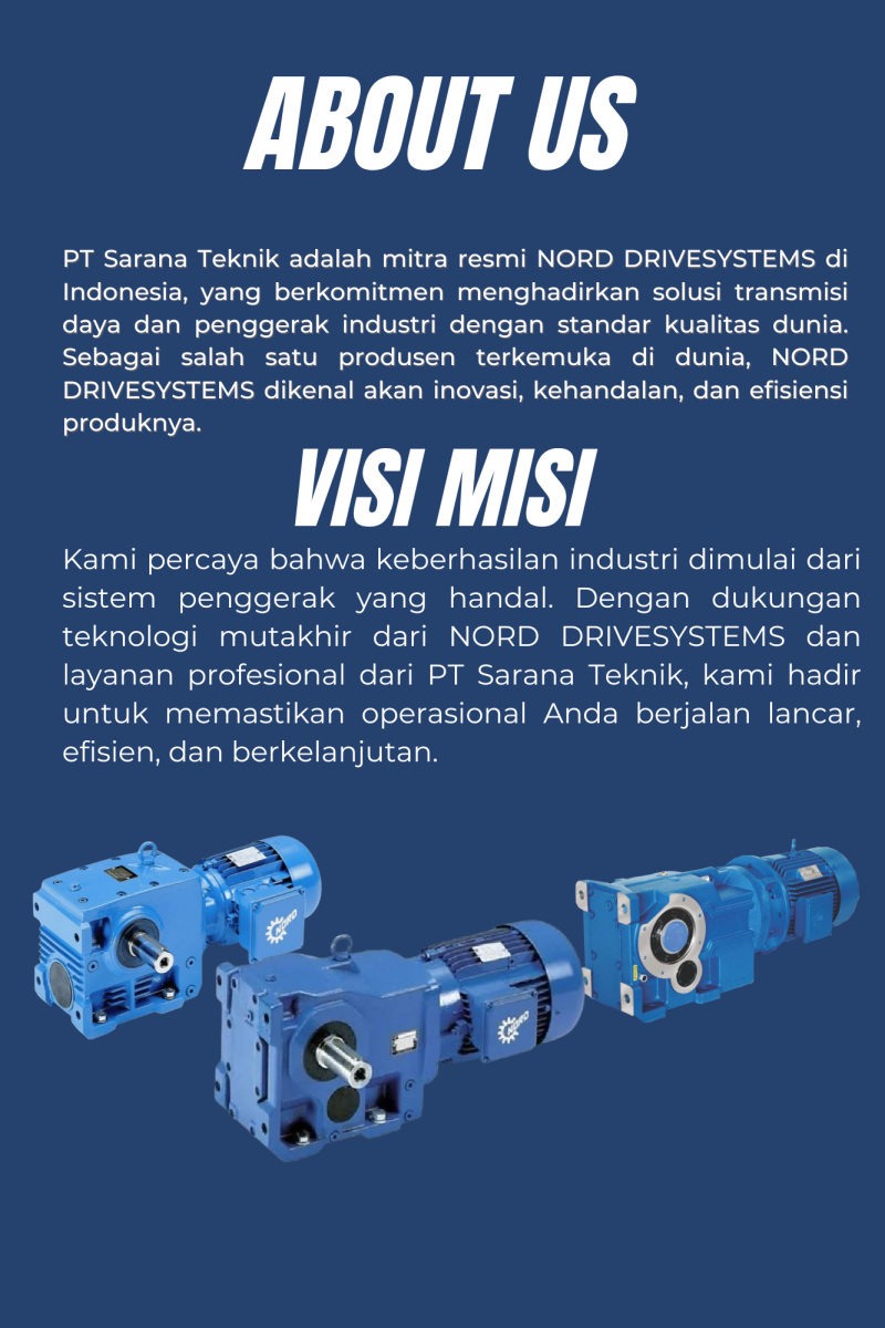 Dengan pengalaman lebih dari 50 tahun secara global, NORD telah menyediakan beragam produk seperti gearbox, gearmotor, motor listrik, dan inverter drive yang digunakan di berbagai industri, mulai dari manufaktur, makanan & minuman, pertambangan, hingga logistik.